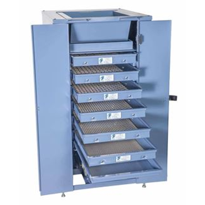 Gilson Tapping Sieve Shakers have a researched-based sieving action that produces sharp, repeatable separations quickly over a broad range of particle sizes and material types. The Gilson-engineered sieving action results from perfect circular rotation of the sieve stack plus vertical two-way tapping at 48 taps per minute. These high-capacity shakers can hold as many as twenty sieves, depending on model and sieve frame dimensions.
