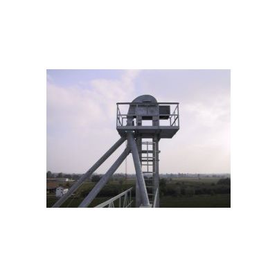 A Bucket Elevator (EG elevator) is a mechanism for hauling bulk materials (most grain or fertilizer) vertically. It consists of conveyor belts pulling buckets encased into a steel casing: the belt tension regulation system can be accessed through inspection and maintenance openings. The drive head is made with thick steel sheets bolted together, while a removable lid and an inspection hatch make maintenance easier and faster. The drive unit is operated through a motor engine with in-built reducer and backstop. The machine is built in painted carbon steel with, upon request, extra galvanized varnish. It is also available in AISI 304 Stainless Steel.