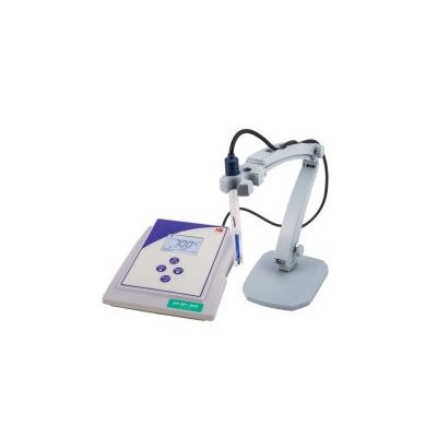 pH meter benchtop digital microprocessor, resolution ± 0.1 / 0.01 pH . Large graphic display 2-color backlit. Manual or automatic temperature compensation with probe NT 55. Automatic calibration from 1 to 3 points for pH. Buffers selectable NIST, USA, or user-defined values. Viewing on the display of buffers used for calibration, the electrode status. Intuitive management parameters through icons. Messages of self-diagnosis. Magnetic stirrer integrated (only in version B) but also be positioned at a distance of 50 cm with control independent of the speed of agitation. Keyboard splash-proof IP54, warranty on the electronics of 3 years.