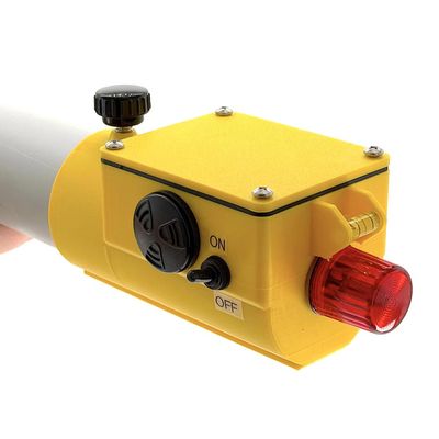 IBC LEVEL ALARMS monitor liquid level in IBC tanks. Flashing LED and buzzer prevent overfilling. IBC TOTE TANK ALARMS for high liquid level makes sure you never overfill an IBC. When liquid level reaches the float switch, the IBC Alarm sounds a very loud warbling buzzer and flashing LED. Pressing the silencing button in response to the alarm mutes the buzzer, while the LED continues to flash. (in the default mode) Beyond the basic behavior, the IBC alarm can be adapted to almost any level monitoring situation. For example, our customers have requested things like connection to solenoid valves, PLCs, automatic emptying, relay outputs, WIFI communication, and much more. If you need to control the process of filling an IBC, we have you covered.