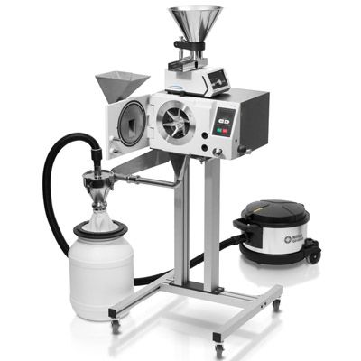 The cyclone mill TWISTER is specially designed for the processing of foods and feeds for subsequent NIR analysis. The optimized form of rotor and grinding chamber generates an air jet which carries the ground sample through the integrated cyclone into the sample bottle. The air jet prevents the material from heating up, thus preserving the moisture content.