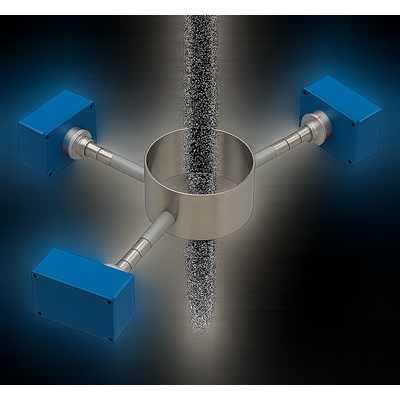 Usable in free fall and in pneumatics. Continuous speed measurement of solids (powder, granules, dust) in metal pipes. Measurement directly in the conveying stream / entrained flow. Measurement is completely independent of material. Simple retrofitting using a welding socket.