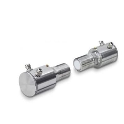 Microwave barrier for contactless detection of dry bulk solids in containers, in pipes or in shafts. Simple and uncomplicated retrofitting. Reliable fill level and limit level detection. Detection through all non-conductive walls. With process adapter up to 220 °C and 20 bar pressure possible. With ceramic mounting up to 1,000 °C possible. Absolutely insensitive to material cakings. Can be used up to a profile of 18 m (larger profiles on request). Compact device – no separate electronics. Signalling through relay switching. Can also be supplied in short housing with separate electronics.