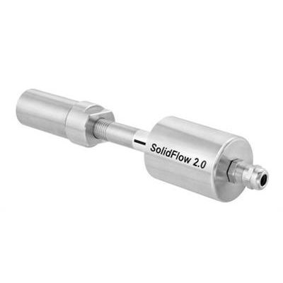 For measurement of high mass flow rates for dry solids from the exit of pre feeding devices, e. g. screw conveyors, air slides, rotary valves, bucket elevators, etc.