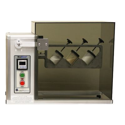 GlobePharma’s MINIBLEND TABLE-TOP POWDER BLENDER is a research and development scale tumble blender for use with powders. A formulation scale powder blender for interchangeable 0.5qt, 1.0qt, 2.0qt vessels and our patented Small Bottle Blending Attachment. With the Small Bottle Blending Attachment, you can mix up to three formulations as small as 10g with one attachment. Our small mixer is perfect for your next formulation. The MiniBlend is CE Compliant.