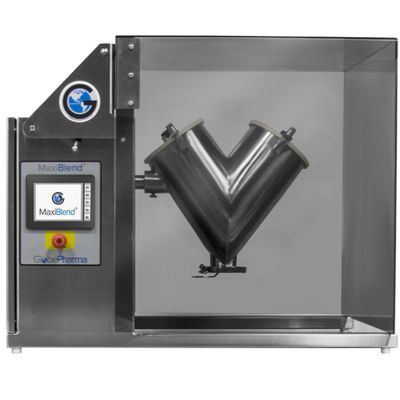 GlobePharma’s new MAXIBLEND® Lab Blender is a self-contained tumble blender intended for blending of powders in V-shells and bins. GlobePharma, Inc. is innovating lab scale blending with the new MaxiBlend Lab Blender. The new MaxiBlend Lab Blender features an upgraded, intuitive control interface and seamless, all-stainless steel design. Our new MaxiBlend Lab Blender features an upgraded, intuitive control interface and seamless, all-stainless steel design. The MaxiBlend powder blender offers interchangeable vessels from 0.5qt through 16qt. It is CE Compliant.