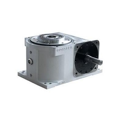 The constructive principle of the intermittent revolving units, with a large positioning diameter, allows the transmission of large dynamic torques, which enables them to move large loads at a high speed. The support unit has a large surface area for the moving unit, giving the installation great stability. They also have a large fixed shaft that is hollow for passing electric, pneumatic conductors, etc. and are normally used in robotised welding installations, automatic assembly machines and other severe productive processes for their solidity and reliability.