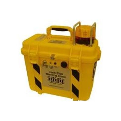 Track-Watch uses Train-Detectors placed at track locations that are a safe distance away from the track-working area. Train-Detectors sense oncoming rail traffic that triggers a transmitting “Alert” signal back to the track-working area. The track-working area has the Track Side Warning Alarm unit and the track-worker-worn TPASS®3 or SuperCELL® SC500, all which sound an audible and visual alert notifying the work crew that rail traffic is approaching.
