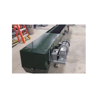 Can be used for a lot of products where the angle is steep, and roll back is a problem. We use an 18" wide belt with 2" cleats. The spacing can vary from 6", 9", or 12" depending on the product. Grain capacities vary from 1,000 BPH to 3,000 BPH depending on the angle and belt speed. Conveyor has a 6.5" drive roller, and a 6.5" tail roller.