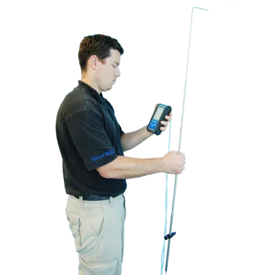 GrayWolf Sensing Solutions offers advanced telescoping hotwire anemometer probes, designed for precise airspeed measurement in various applications such as laboratory fume hoods, ceiling diffusers, and duct systems. The AS-201 probe extends from 38 cm to 80 cm, while the AS-202A probe ranges from 53 cm to 94 cm with an adjustable head providing angles of 180°, 90°, and 45° for versatility in air measurement tasks. These probes cater to low-to-medium air velocity ranges, ensuring highly accurate readings. They integrate seamlessly with GrayWolf's AdvancedSense XM meters, capable of processing up to 32 parameters by connecting DirectSense II probes and various other sensors. An important feature is its cloud connectivity via Wi-Fi, enabling remote data access. This makes GrayWolf's solutions ideal for comprehensive airflow analysis across different environments.GrayWolf - Extendable Pitot-Static Tube