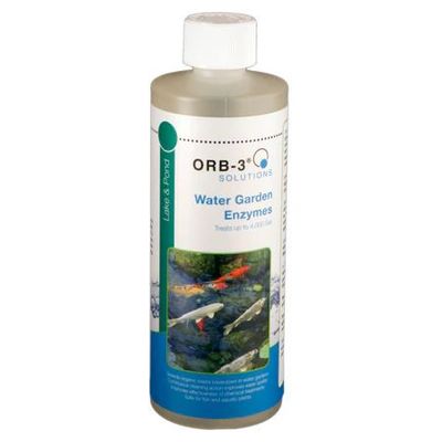 Powerful proven enzyme formula enhances water quality and minimizes sludge buildup. Fish and family-friendly, consistent use of Orb-3 Lake & Pond Enzymes fortifies recreational water to keep ponds at their best all year long. Use Orb-3 Water Garden formula for koi ponds or Orb-3 Lake & Pond formula for larger backyard ponds.