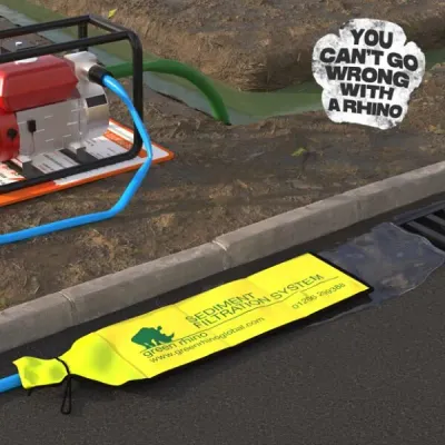 Green Rhino Sediment Filters provide an efficient solution for dewatering activities that helps ensure compliance with environmental regulations. These filters are designed to capture and remove sediment from water that is being discharged from excavations, effectively reducing the likelihood of environmental contamination. By fitting over the discharge hose's end, the sediment filters facilitate the removal of particles, allowing the cleaned water to be safely released into natural water systems or drains. Made from durable materials, these reusable filter bags offer a practical alternative to bulky settlement tanks and expensive vacuum tankers. The filters can be used with a standard 2-inch pump and can be scaled using the Green Rhino Manifold System to handle higher flow rates. Additionally, the system is engineered to handle pressure buildup, preventing damage through a thoughtful design that includes breakable cable ties for safe detachment. These filters are available in different variants, including those specifically designed for fine sediments or areas with hydrocarbon presence, making them adaptable for various dewatering scenarios.