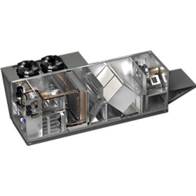 Pre-engineered rooftop unit incorporates a total enthalpy core that provides both sensible and latent heat transfer and meets ASHRAE 90.1 minimum efficiencies. As the enthalpy core has no moving parts, the need for mechanical maintenance and repair is greatly reduced. The unit is ideal for commercial, institutional, and industrial applications requiring low cross leakage and minimal maintenance. Heating and cooling options are then provided downstream of the enthalpy core to provide additional tempering and dehumidification.