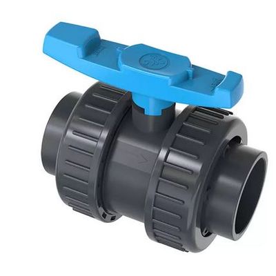 Solvent Cement Double Union Ball Valves have two union ends so that the valve can be demounted from a pipeline for refurbishment or repair. The valves are available as PVC Double Union Ball Valves with threaded and solvent ends in imperial sizes. Our PVC valves offer resistance to a wide range of chemicals, in addition to offering high impact and high tensile strength. Easily assembled with perfect sealing under all conditions, our Double union ball valves can be used for a wide range of applications and operates at a working pressure of up to 16 bar, dependent on size.