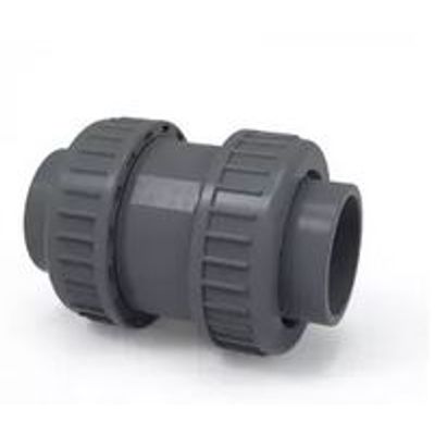Our PVC Double Union Spring Check Valve is available in 1/"to 4" and 20 mm to 110 mm dimensions with a selection of BSP Threaded or Metric Solvent Socket. PVC-U`s chemical resistance characteristics are outstanding and can resist to most diluted from acids, alkalis, salts, and solvents. This is an easy PVC check valve to install and maintain which can be either vertically (only upwards) or horizontally mounted.
