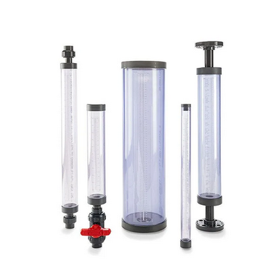 Griffco PVC Calibration Cylinders and Borosilicate Glass Columns are designed to enhance the performance of a chemical feed system by providing a verification of the flow rate of the chemical feed pump. Griffco offers a wide range of calibration column sizes and material options that work in many different applications.