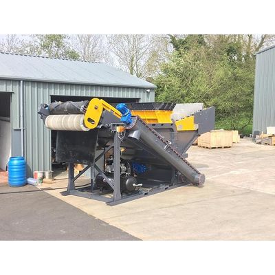 The Waste Wizard 120 uses a "sink/float" system to separate light density material such as plastic, paper, wood, and foam from heavy materials like aggregates and recycled building material.