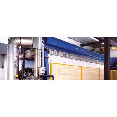 At the VfA Verein für Abfallentsorgung plant (VfA Association for Waste Disposal) in Buchs, Switzerland, a filter press dryer is in operation to dewater and dry the sludge from the flue gas desulphurization process of a waste incineration plant. The press is built with 59 PP membrane plates of 1200 mm in size and produces 300 dry metric tons per year of cake at 70% solids content. It operates at a rate of 3 cycles on each 24 hour day, with very minimal supervision.