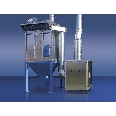 Filter with pneumatic cleaning system to prolong the suction action. The GCP filter is used to eliminate dust with fine granulometry and high concentration. The dust is removed in a container on a trolley or through a star valve. The cartridge cleaning system is automatic and uses compressed air jets in counter-current with an electronic control unit to vary the frequency of the cleaning jets depending on the effective degree of blockage of the cartridges, allowing savings on air and increasing the life of the cartridges.