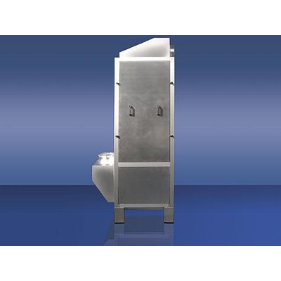 Filter designed for operations that generate Volatile Organic Substances. Active carbon Filter for VOS and substances that are easily absorbed by active carbons. The filter envisages a filtering septum with a thickness of 510 mm that makes it possible to obtain quite high contact times. The carbons are loaded from the roof through a hatch whitch releases the whole filtering section. They are emptied via a rotocell. An anti-explosion hatch is fitted in the two chambers, clean air and dirty air.