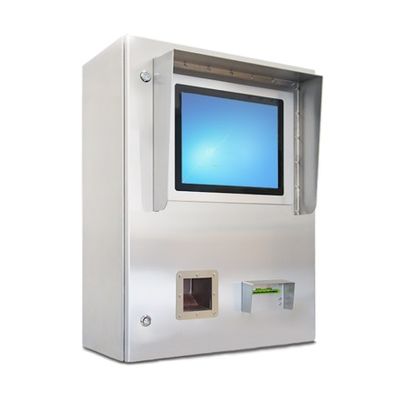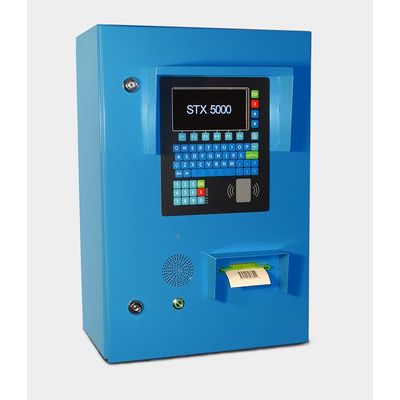 The self-service terminal STX 5000T is equipped with a high-resolution industrial touch screen. The STX 5000T terminal can be equipped with an industrial weight ticket printer and an industrial qr or barcode reader. The terminal has a housing made of brushed stainless steel.