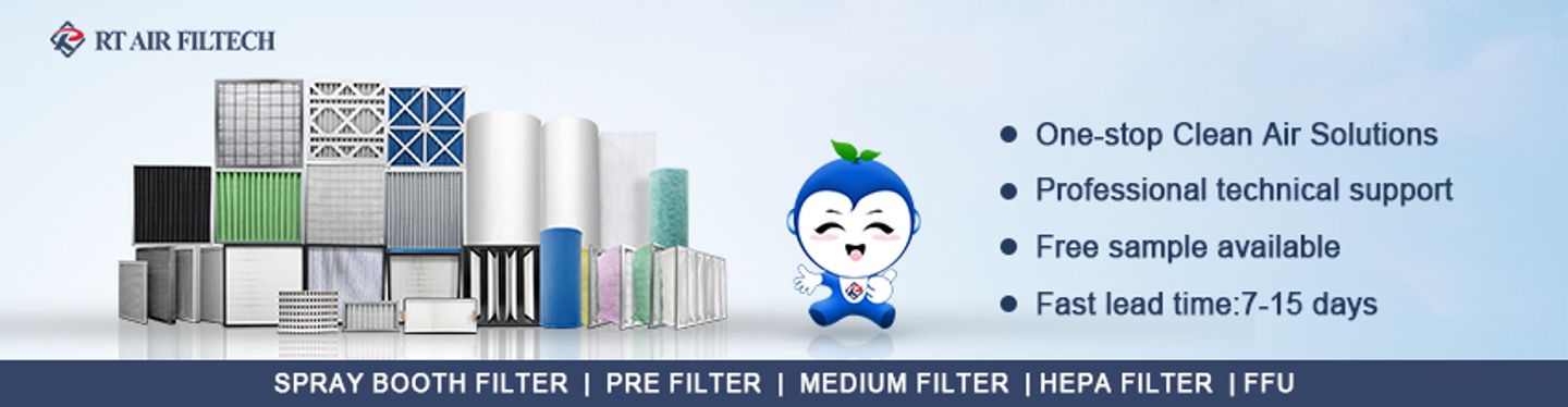 Guangzhou RT Air Filtech Co., Ltd. is a production-oriented enterprise integrating R&D, production, sales and service. It is committed to offer related ranges of air filters for industries such as electronics factory, semiconductor, liquid crystal display, bio-pharmaceutical, food, petrochemical industry, clean room, hospital,rail transit, spray booth, commercial and residential construction. Products include: Pre filter, air intake filter media, ceiling filter, paint stop filter, activated carbon filter media, fire retandart filter media, Pre&Medium efficiency plank filter, Pre&Medium Box filter, Pre&Medium bag filter, paper frame filter , metal mesh filter, high temperature filter, activated carbon filter, compact filter, Min-pleated HEPA filter, Pleated HEPA filter, High efficiency air supply, FFU, laminar flow hood, etc
