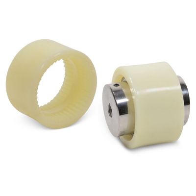 GUARDEXTM is a double cardanic curved-tooth gear coupling. This three-piece design is able to compensate for axial, radial, and angular shaft misalignment. The coupling consists of a nylon sleeve and two steel hubs. As a result, creates a maintenance free product and doesn’t require any further lubrication. It fits electric motor driven applications up to 300HP. They are perfectly interchangeable with other popular European designs.