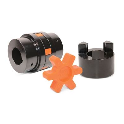 The Curved Jaw couplings can be utilized in many applications and serve as an all-purpose coupling. The basic design of the Curved Jaw allows for a higher torque capacity in a compact design. The curved tooth has a greater contact area which gives it the high torque capacity, and reduces edge pressure. It will accommodate axial, radial and angular shaft misalignments. The hubs are produced from a variety of materials including; aluminum, gray iron, steel, sintered steel, and stainless steel. The spider elements are available in various durometer options in Urethane & Hytrel. The spiders can perform under normal duty cycle conditions to heavy duty cycles which include shock loading and can minimize torsional vibrations in the system.