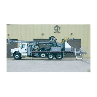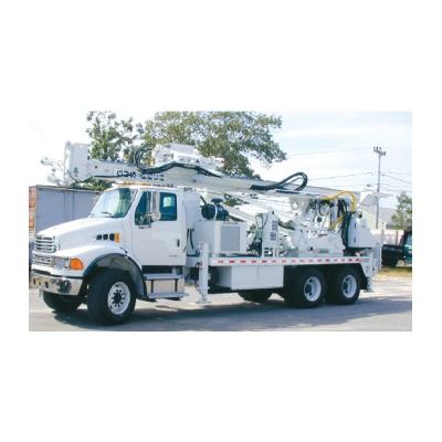 Sonic head of customer`s choice. 12` tube mast. Hydraulic slide base. Aluminum work platform or stands. Two-speed winches. Single station control console. Feed control system. Cross head slide with Tilt head carriage. Transfer case from truck engine or diesel power unit. Break out wrench system with 14` opening, 3` float and rod spinner. Two-speed, cable, hydraulic cylinder operated pulldown/pullback drill system. Bean injection pump 37 gpm/1000 psi (std). Hydraulic swing around jib with hydraulic extension. 4 point hydraulic outrigger system with rear hydraulic wiggle tail. Hydraulic sliding tower for angle drilling.