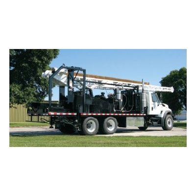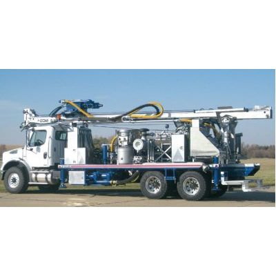 750 cfm/250 psi air compressor (Std). 12` tube mast. Cross head slide. Feed control system. Hydrostatic/planetary top head drive. Single station control console. Two-speed winches. Hydraulic outrigger system. Aluminum operator stands. Transfer case from truck engine or diesel power unit. Retractable drill stem (auger) clamp/guide table with removable guide. Two-speed, cable, hydraulic cylinder operated pulldown/pullback drill system.