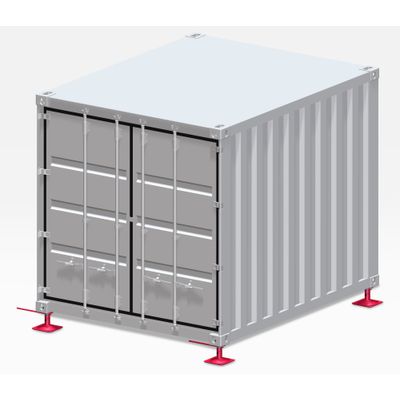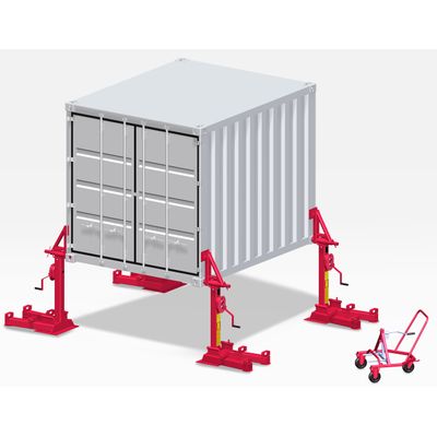 Manually operated screw jack elements for placing and aligning containers. Manual operation with lever. Mounted in the lower openings of the bottom corners of the container.
