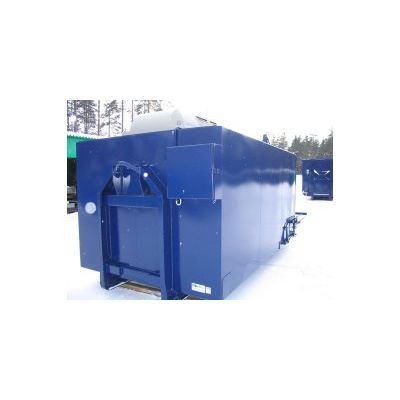 Bottom 4 mm ja sides 3 mm metal sheet. Frame profiles (U-profile 100x50x4 mm). Hook and wire systems. Back rolls. Douple door in the back. Hooks on side for cover. Sandblasted (Sa 2,5), primer and coverpainted. Open containers can also be “tailored” according to customers wishes.