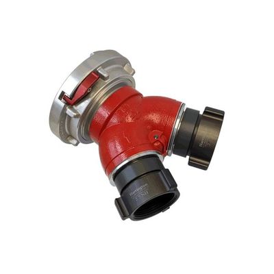 Light weight, single clappered Siamese valves for supplying one LDH line from two smaller lines. The aluminum alloy is powder coated for long lasting finish and corrosion resistance. The one clapper design will close off the non pressurized inlet while permitting flow from the pressurized inlet. Choose from a variety of sizes of Storz or NST adapters.