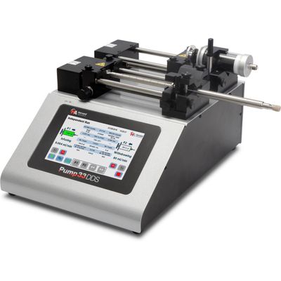 The Harvard Apparatus Pump 33 DDS (Dual Drive System) is a leap forward in syringe pump capability. The Pump 33 DDS has two independent pumping channels controlled by an intuitive touch screen interface.