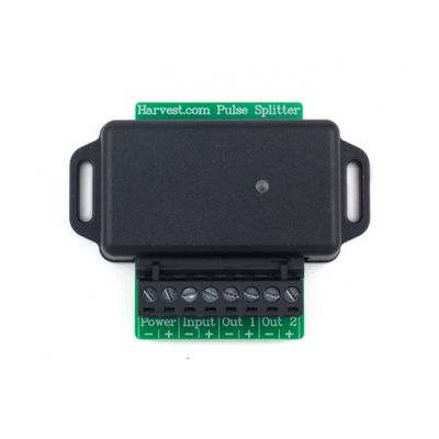 The Harvest Pulse Meter Splitter splits the pulses from a single flow meter to provide two isolated pulse outputs.