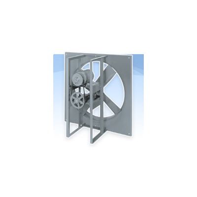 Peerless Blowers propeller fans are used as heavy duty industrial ventilation fans in steel mills, machine shops, packing plants, etc, or in duct installation where static pressure up to 1inch is encountered. The belt drive propellers fans are available in 7 different sizes ranging from an 24` propeller to a 60` propeller. The CFM range is 4800 to 63445 with up to 1 ` static pressure. The propeller fans are constructed with an heavy duty panel and support arms. The propellers are steel. The panel has a deep drawn venturi. All fans are furnished with ball bearings with grease fittings for lubrication. All belt drive fans are furnished with open driproof motors as standard. Totally enclosed motors are also available
