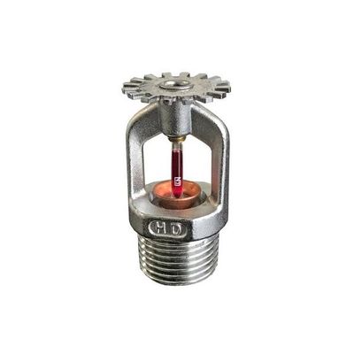 HD Pendent Sprinkler is a small, thermosensitive, glass-bulb spray sprinkler available in several different finishes and temperature ratings to meet design requirements. Sprinkler is UL Listed and FM Approved. During fire, the heat-sensitive liquid in the glass bulb expands, causing the glass bulb to shatter. Water flowing through the sprinkler orifice strikes the sprinkler deflector, forming a uniform spray pattern in order to control or extinguish fire.