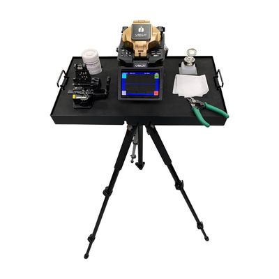 This unique British-designed and British-produced Universal Fibre Workstation will greatly assist the user in both the application and the actual fusing of cables on site. The 2 built-in rollers are designed to feed the cable into the fibre blowing machine. The tray surface is a non-slip rubberised mat. The Fusion Splicer can be secured to the tray before use, by way of the built-in anchorage points. The tray has raised sides to avoid items falling off the tray when in use. The tripod legs has 3 height adjustable sections. This ensures that the workstation will always be on a level working surface. Also provided is a pan tilt attachment. This connects to the tripod before fixing to the workstation. The pan tilt will allow the workstation to be adjusted to various angles of working when necessary. The set is supplied with a useful carry case to protect and keep the set safe when not in use.