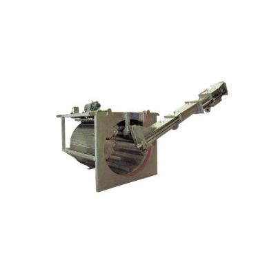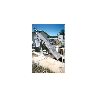 The Transporter shaftless spiral conveyor is perfect for conveying screenings. An alloy steel shaftless spiral rests in a polyethylene-lined stainless steel trough. Solids are fed directly into the unit and the shaftless spiral conveys the screenings through the transport section. An optional wash zone can be provided, where a flow of wash water removes organics. Transporters can sit at inclines up to 25 degrees and supplied in lengths up to 50 feet. The Transporter shaftless spiral conveyor/compactor can accept screenings from multiple screens.TurboDrum - Inclined In-Channel Water Drum Screen