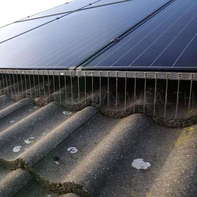 Stainless Steel Bird Spikes are an effective and humane bird control device to prevent large birds from landing or nesting on solar panel. Stainless Steel Bird Spikes are ideal for preventing birds from nesting under the solar panel, which can cause clogging. Simply attach the Bird Spikes to the lip of solar panel, which makes the space small enough to prevent the bird enter.