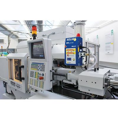 The JETBOXX® plastic granulate dryer system by HELIOS is engineered for precise drying of small material quantities in plastic processing applications. Designed to be mounted directly on the feeding zone of injection molding machines, these compact dryers offer drying volumes from 1 to 24 liters. The system ensures the granulate is dried directly before entering the plasticizing cylinder, effectively preventing re-humidification or cooling. Its design includes features like double-walled special glass drying containers, providing energy efficiency and transparent visibility for immediate detection of contamination. Compressed air conveyors distribute air evenly, while the modular control unit allows for facile maintenance. The system also incorporates adjustable drying intensity and over-drying protection to optimize performance. HELIOS ensures each dryer is factory-calibrated, with options for repeat calibrations, complemented by long-term after-sales service and support.