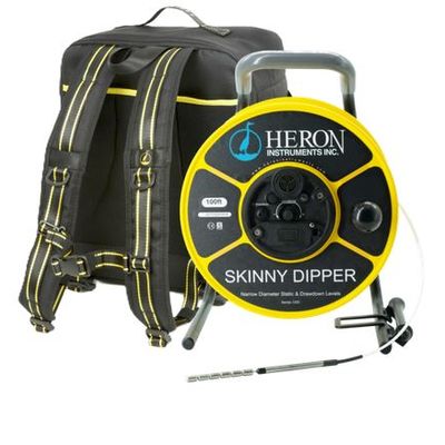 The PFAS FREE SKINNY DIPPER narrow diameter water level meter has the thinnest tape and probe in our whole product family. The SKINNY DIPPER is a premium water level meter designed for hydrogeologists and well drillers to measure water down narrow openings of wells and piezometers. The SKINNY DIPPER water level meter is ideal for measuring static water levels in narrow wells, boreholes, tubes and piezometers. The slim line tape and ¼” probe enable users to take readings while the pump is still in the well, whereas wider tapes may get tangled. The premium padded carry case comes included to protect your precision instrument from the elements.