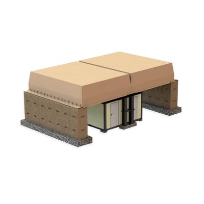 The SU-LOPS (Single Unit Lightweight Overhead Protection System) configuration provides lightweight overhead protection to units from indirect fire weapons. Designed to fit directly onto a single Edilsider 1001 shelter series container, this roof system allows greater flexibility for camp design.