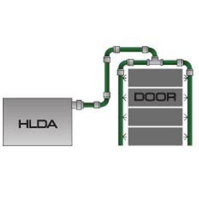When treating garage doors and open walls, the HLDA Series Odor Control Unit is utilized in conjuction with the Door Curtain.