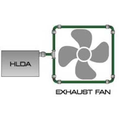 When treating exhaust fans and vents, the HLDA Series Odor Control Unit is utilized in conjuction with Vapor Diffusion Manifold.