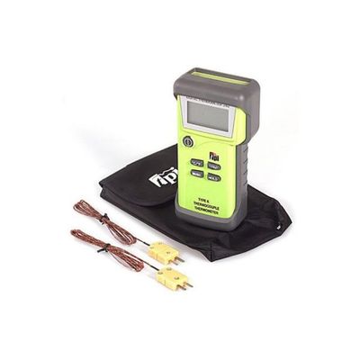 Thermocouple type indicator. °F/°C unit selector. Display mode indicator (T1, T2, T1-T2). Select between Celsius or Fahrenheit display. Record and display minimum and maximum temperatures. Protective rubber boot. Easy-to-read main display. Displays OFL to display disengaged or open probe. On/off button with guard to prevent accidental engagement. Select input T1 or T2 and display temperature differential (T1-T2). Available with NIST traceable certificate, please enquire for pricing.