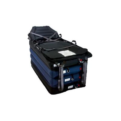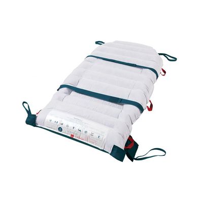 The Evacuation HoverJack® allows caregivers to perform safe and efficient stairwell evacuations while keeping the patient in a supine position. Adjustable air chambers inflate to provide a stable and comfortable surface for patients, while easily navigating doorways and narrow spaces. In the event of an emergency, the Evacuation HoverJack is inflated to bed or stretcher height so that the patient can be laterally transferred onto it. The safety straps and foot-end pouch hold the patient securely, while the Teflon-coated bottom allows for easy transport to the nearest stairwell. The top two chambers are deflated for descent, so the caregivers can slide the patient to safety.