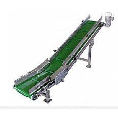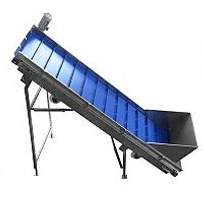Elevator conveyor is meant to transport the product to a higher level, usually to an inspection section or dosing equipment.