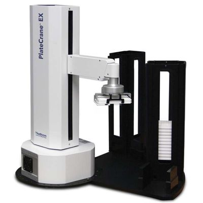 The PlateCrane EX Robotic Arm Microplate Handler offers unsurpassed ease and reliability for automating any automation-capable device for automatic analysis. The PlateCrane EX Robotic Arm Microplate Handler is an affordable, flexible option for automating any plate handling task. Equipped with our SoftLinx™ software suite, it can be configured to serve one or multiple microplate-compatible instruments.