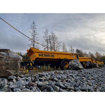 Humus 3CT trailer has loading capacity of 3000 kg and is specially designed for Volvo miniexcavators, but can also be used with smaller tractors. The dumper is of light weight and therefore can be used for easier work. Hardox 450 for trailer body should be used when working with tougher conditions.